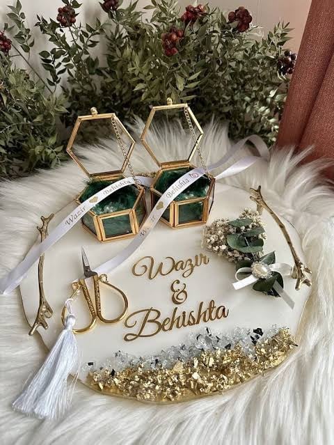 لمسة فنية تجمع بين الجمال والفخامة، مصممة لتجعل يومكم الخاص مليء بالبهجة والرومانسية، مع تفاصيل دقيقة تعكس ذوقكم الرفيع."